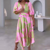 Package Included:1*Elegant Color-Blocking V-Neck Waist-Cinching Dress