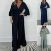 Package Includes: 1* High-Waisted Pleated Deep V-Neck Wide-Leg Jumpsuit