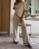 Offering a stylish and trendy look with a crewneck knit short top and high waist loose knit trousers, our Stylish Stretch Knitwear Casual Set made of ultra-soft knit fabric is the perfect choice for a comfortable instant outfit.